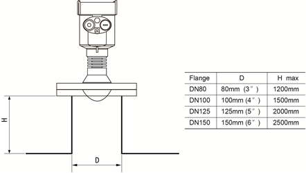 The general principle of the FM continuous wave radar level gauge is that the radar emits electromagnetic waves on the top of the tank, and the electromagnetic waves are received by the radar after being reflected by the medium. The frequency difference δf between the received signal and the transmitted signal is proportional to the distance R from the surface of the medium: R=C (speed)*δf (frequency difference)/2/K (frequency modulation slope). Because the speed of light C and the frequency modulation slope K are known, the frequency difference δf can be estimated to obtain the distance R from the radar installation position to the material surface, and then through the known total height of the tank, subtract the spatial distance from the radar to the material surface (referred to as Empty height) to get the height of the material level.
