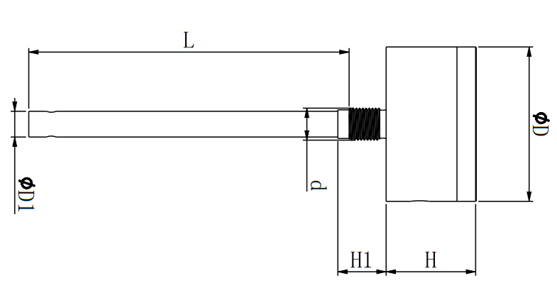D=48mm, H=29mm, d=M10*1mm(Mounting thread), L=Range, D1=8mm
